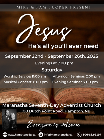 Pastor Mike & Pam Tucker will be coming in September to lead a short series of meetings to encourage people to reconnect with Jesus. The series is called Jesus, He's All You'll Ever Need, and it will take place Friday, September 22 - Tuesday, September 26. Many of you might remember Pastor Mike as the evening speaker at Campmeeting last year.